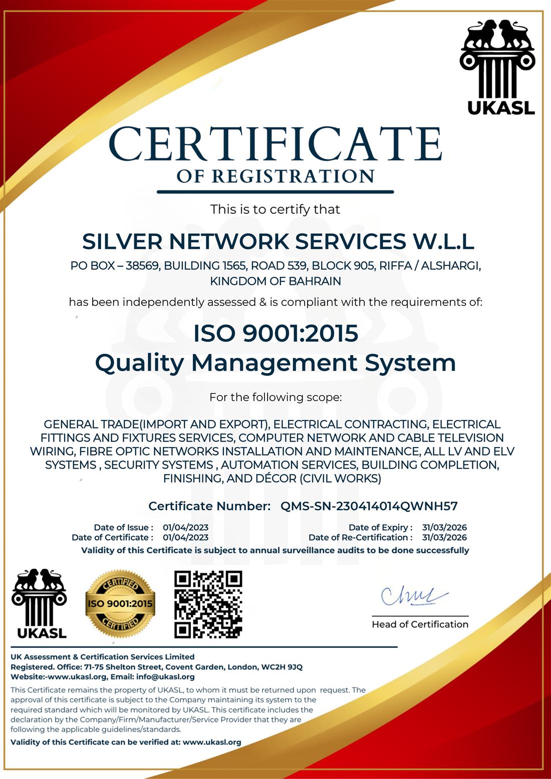 Address : P O Box 38569 West Riffa, Kingdom of Bahrain.